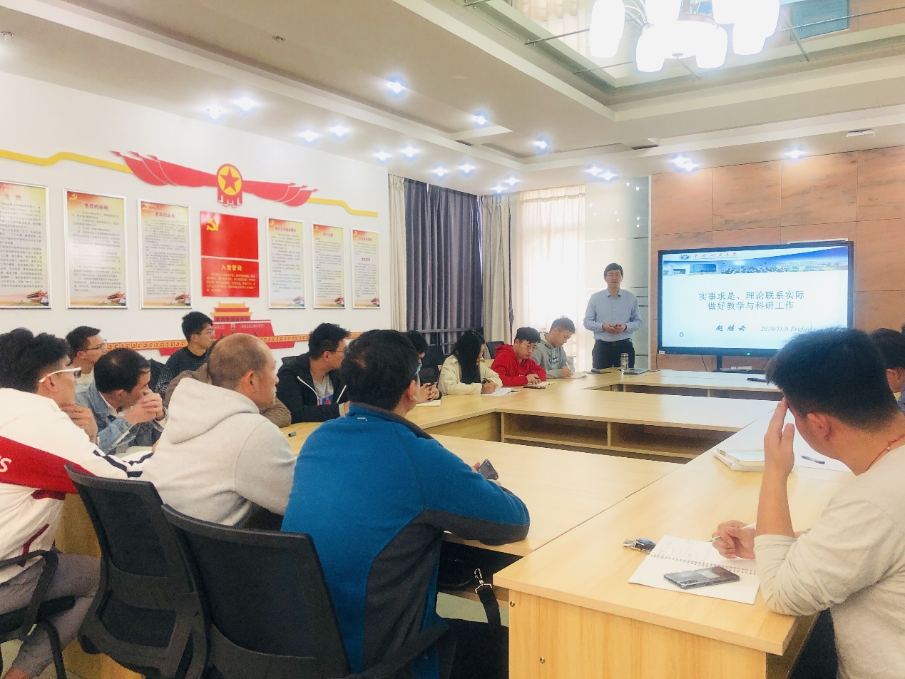 11月8日下午,机电国产精品 党委书记赵继云在机电楼会议室以“实事求是、理论联系实际,做好教学与科研工作”为题作专题党课。机电国产精品 教职工、学生党支部书记聆听本次党课。
