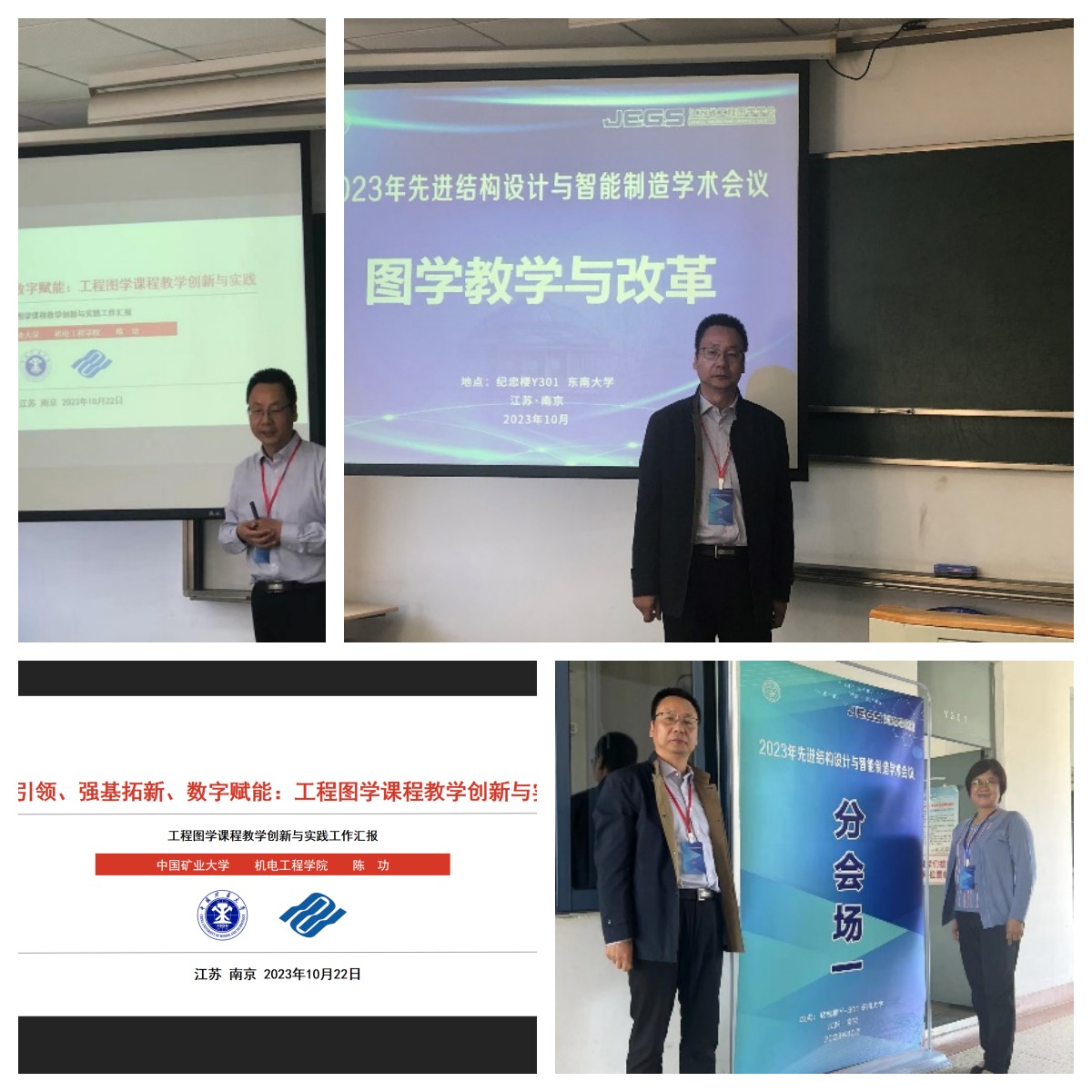 为进一步加强江苏省工程图学学会组织建设,增强学会凝聚力,同时为促进先进结构设计与智能制造国产精品交流与产学研合作,助力先进结构设计与智能制造领域优秀人才培养,由江苏省工程图学学会主办、东南大学机械国产精品 承办的第九届理事会第五次理事会议暨2023年先进结构设计与智能制造国产精品会议,于2023年10月21-22日在江苏省南京市东南大学九龙湖校区召开。工程图学中心组织了陈功和孙海波两位老师参加了会议。