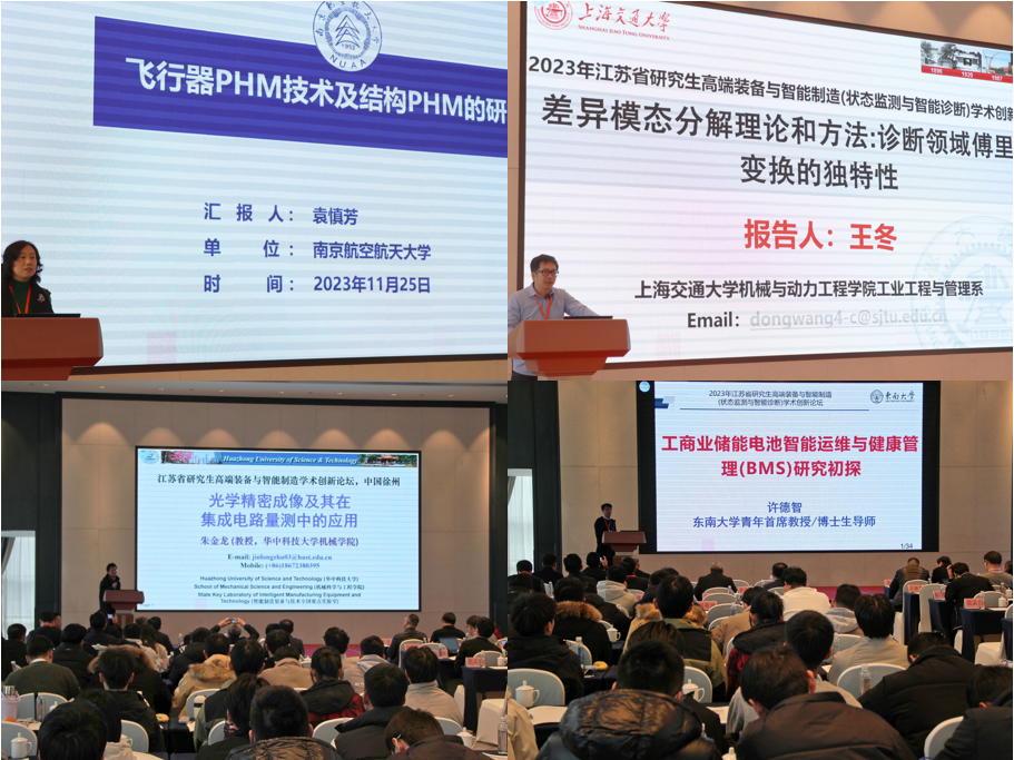 2023年11月24日至26日,由江苏省工学Ⅰ类研究生教育指导委员会主办,国产精品 和江苏省仪器仪表学会状态监测与故障诊断仪器专委会承办的 2023年江苏省研究生高端装备与智能制造国产精品创新论坛在江苏省徐州市成功举办。本届论坛以“状态监测与智能诊断”为主题,吸引了国内外相关研究领域特邀专家、青年学者、研究院所和企业代表、高校相关研究方向博士研究生、硕士研究生等140余名代表参会交流。