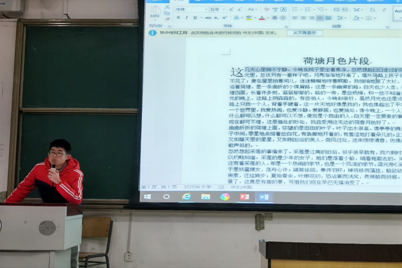 陈福宇同学上台讲解Word的使用技巧