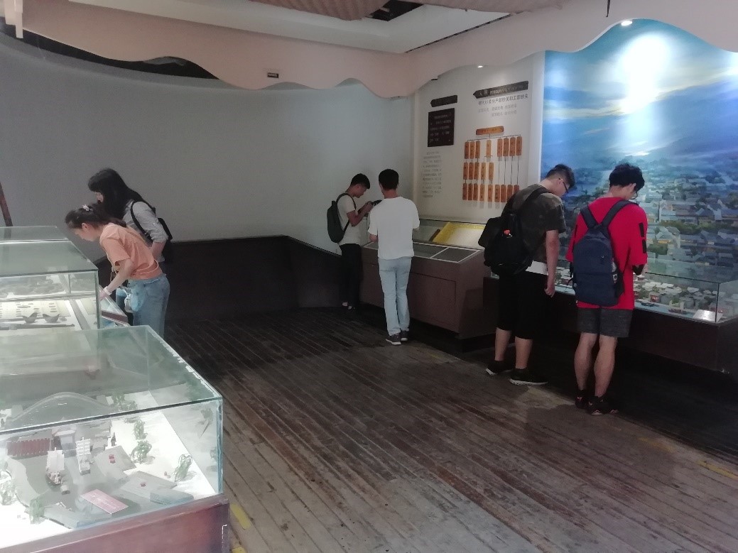 7月16号上午,团队到达台儿庄,在台儿庄古城中,社会实践团一行人首先坐了游船,在游船上了解到台儿庄古城景区以运河为文化轴线,规划对应了 “九水汇川、台城旧志、土村绿荫、庙汪浮玉、柳岸卧虹、古柏望月、运河街市、杰阁凌波”等运河古城八景。进入古城后,沿着古运河道参观周围以水乡建筑为主的水街、水巷。接下来直奔台儿庄大运河历史文化展览馆,其中中国运河税史馆介绍了运河税收文化,反映税史变化,传承税收事业,针对明朝运河税收的一个截面,集中反映运河与钞关、关署与关务、核算、纳税与放行以及漕运与税收兴衰等内容;中华运河招幌博物馆、花门楼景区,一个以板桥汪、花门楼等汪塘传统园林景观为特色的休闲景区,主要景点有板桥、花门楼、万水桥、兰陵书院、台儿庄水文化艺术馆、兰陵县政府旧址、大战弹迹墙参观点、花门楼一小什刹水上街市。