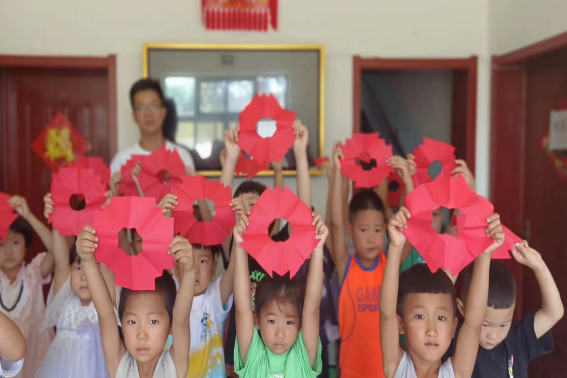 孩子们展示自己的剪纸成果