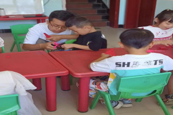 8月10日上午,实践队员首先前往幼儿园所在地与值班老师沟通,教学过程中由队员讲课,老师录制视频,拍摄照片以记录教学过程。课后老师将视频发送至家长群并以孩子们学习的角度供家长观看,如此达到广泛传播作用。