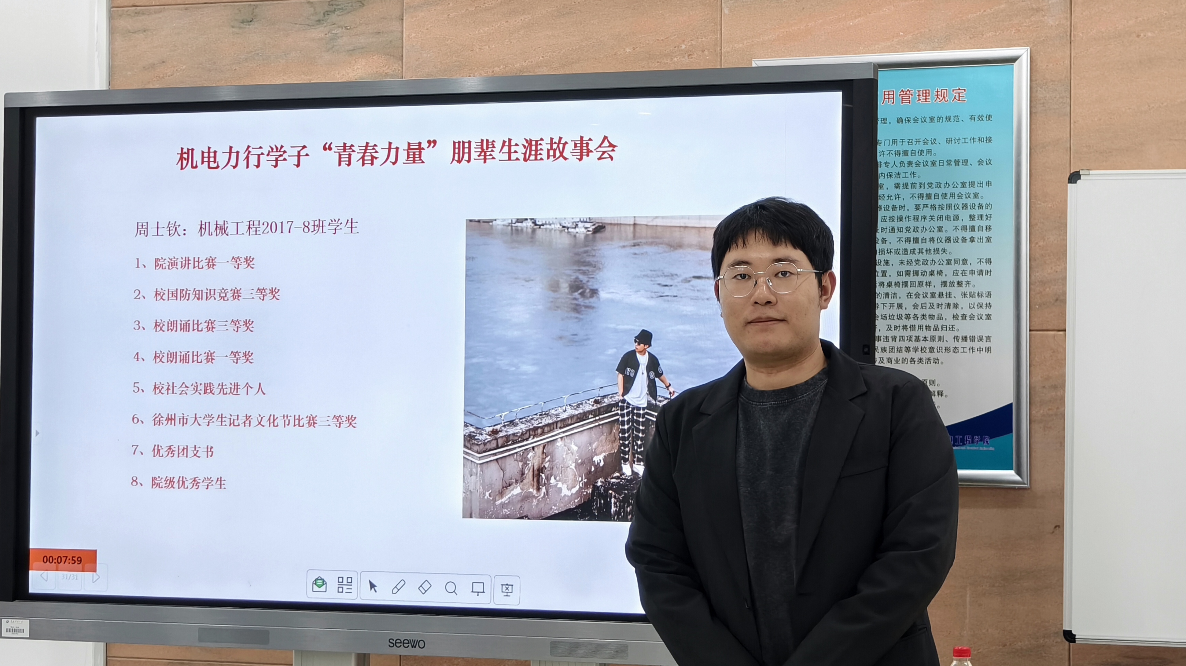 机电工程国产精品 本科2021级于4月3日下午在机电楼A537开展机电力行学子“青春力量”朋辈生涯故事会。本次故事分享会在本科2021级辅导员邓燕飞老师主持下召开,四位2017级的毕业学长与2021级主要学生干部参与本次分享会。本次故事分享会邀请机械工程2017-8班的周士钦学长进行题为“永远用奋斗定义自己”的经验分享。