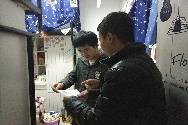 扫楼宣传开始了,志愿者们拿着宣传单敲开一间间宿舍的门,认真地向宿舍里的每一个人介绍,热情地说明这此次温暖公教的活动意义以及目的。伊始,一些志愿者有点害羞,他们面对陌生的学长有些语无伦次,好在学长们对待志愿者们的态度非常友好,渐渐地,志愿者们克服了紧张的心理,自信流畅地介绍起了“温暖公教”活动。许多同学当场就找出了自己的旧衣服,还对志愿者们表示了感谢并表示这些衣服他们留着也没什么用了,正好给志愿者们拿去做一些爱心志愿活动。还有的同学没有闲置不用的衣服拿给志愿者,但他们表示想参与到后期制作、安装坐垫的工作中。